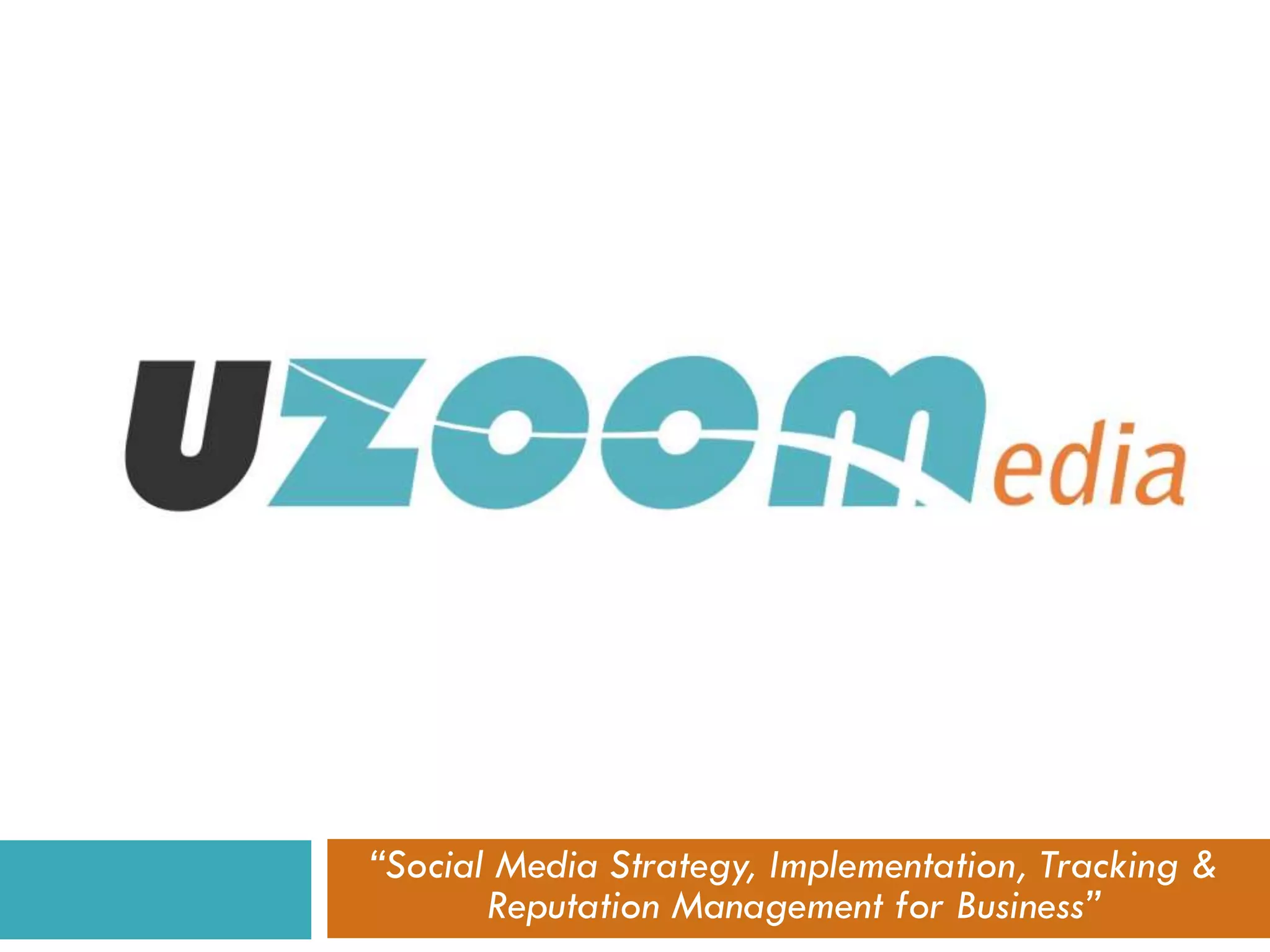UZoom Media is a full-service social media consulting firm based in Lansing, Michigan that provides social media strategy, implementation, tracking, and reputation management services globally. They help businesses leverage social media platforms like Facebook, Twitter, LinkedIn, and YouTube to engage customers and build their brand. Their basic social media plan includes an assessment, research, strategy development, and timeline with investment details.