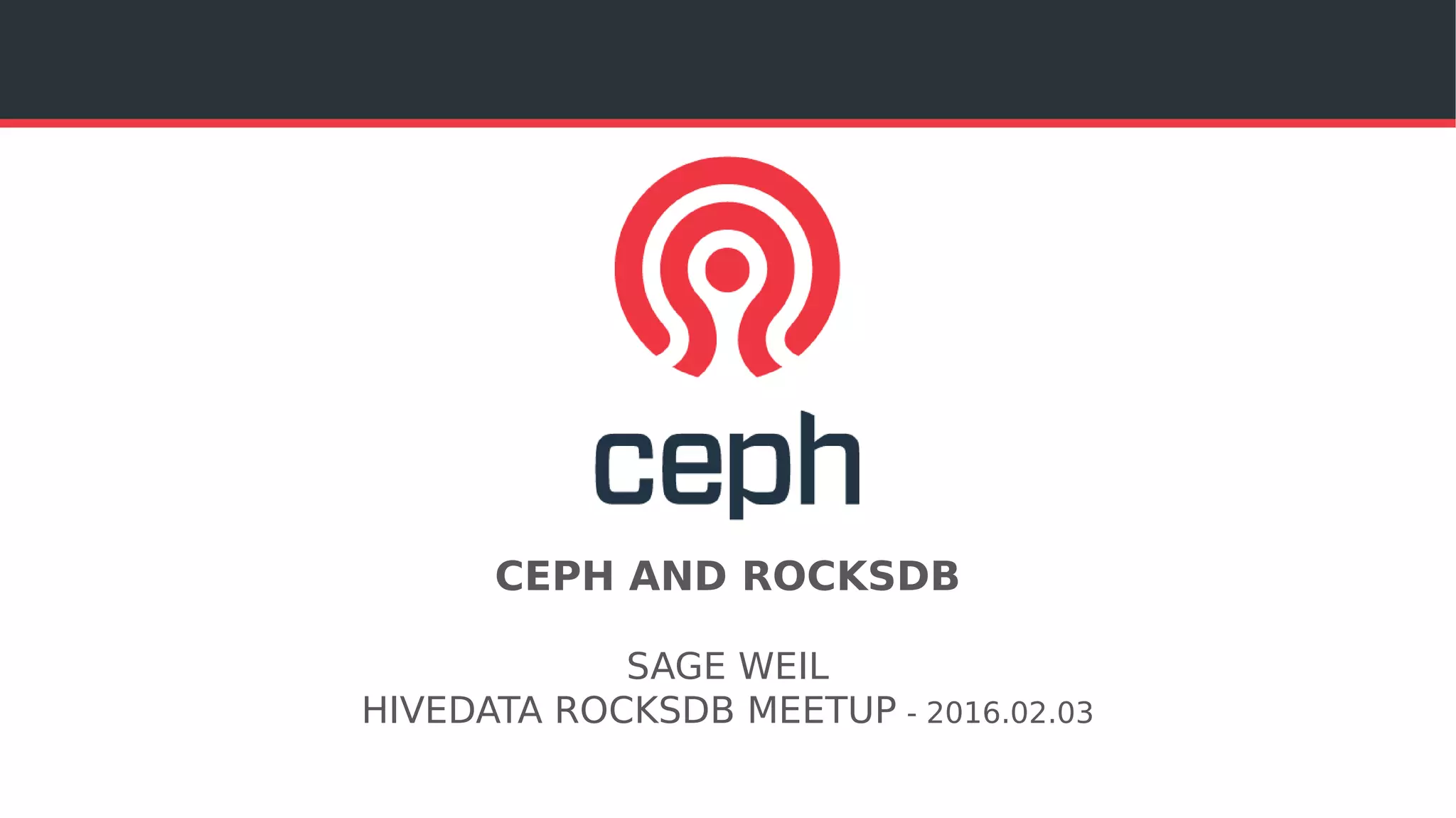 The document discusses the Ceph storage system, highlighting its capabilities for object, block, and file storage, while addressing the shortcomings of traditional POSIX storage. It introduces the new Bluestore backend utilizing RocksDB for efficient metadata management, journal recycling, and better performance. Additionally, it emphasizes the importance of avoiding POSIX interfaces due to their limitations in handling distributed data effectively.