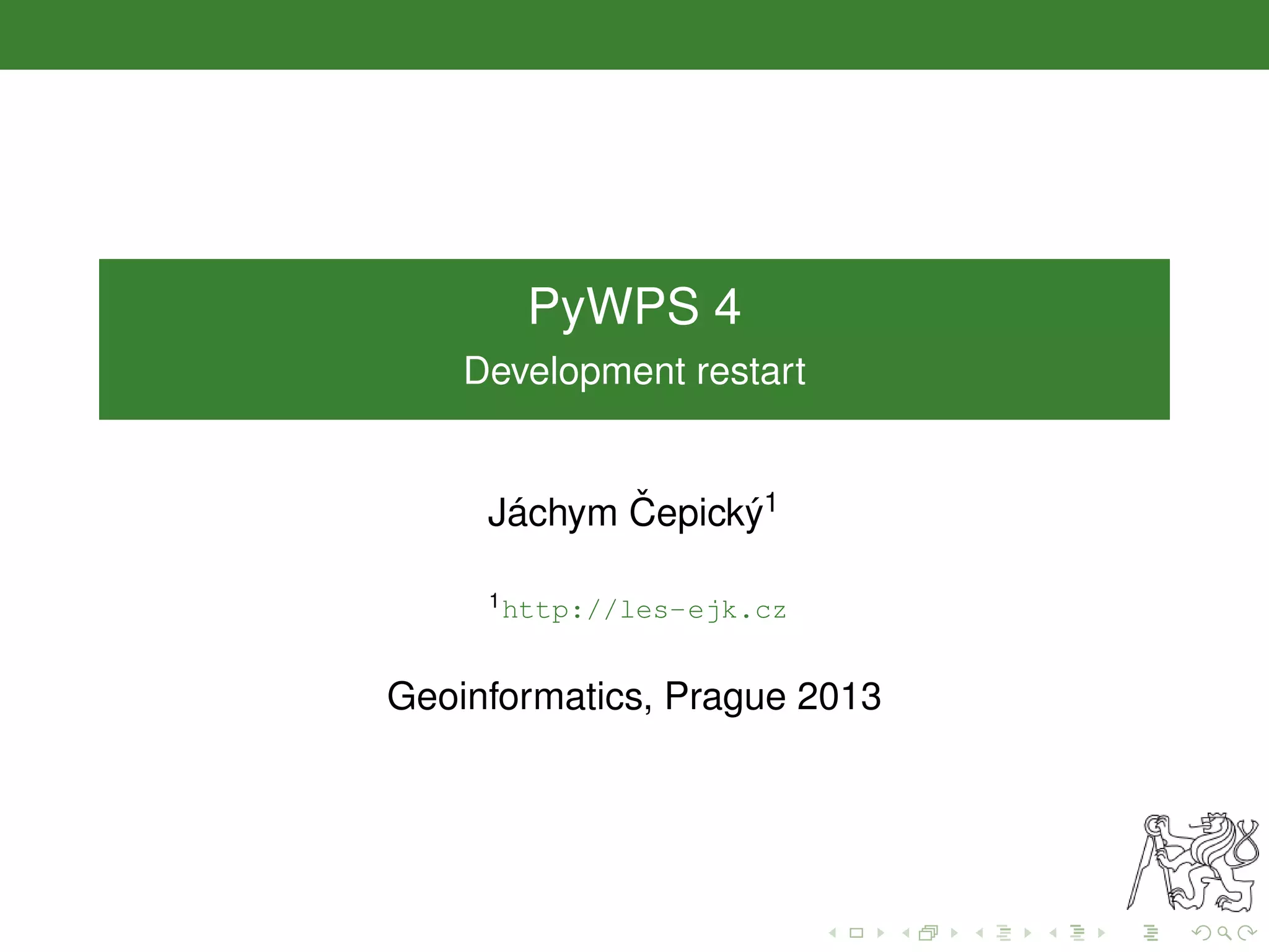 PyWPS 4 is a restart of the PyWPS project to implement OGC WPS standards in Python. It has been started from scratch using Python 2.7 to allow future compatibility with Python 3. It aims to provide easier process definition through upper and lower level APIs and prepare for the next version of WPS standards. Development is occurring on GitHub with contributors including Jachym Cepicky, Alex Morega, and Jorge de Jesus.