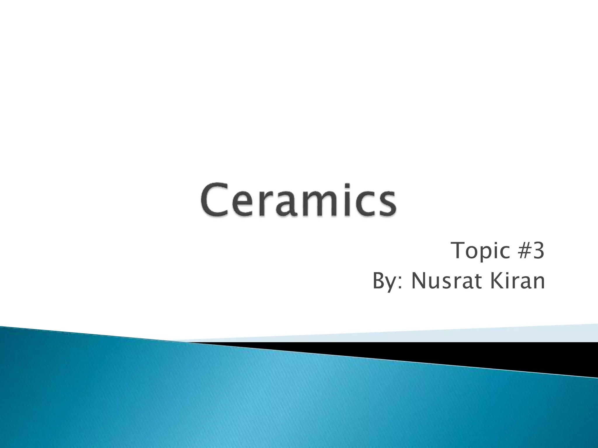 Ceramics are inorganic, nonmetallic solids produced at high temperatures, classified into traditional and advanced categories. Traditional ceramics include pottery, whiteware, earthenware, stoneware, chinaware, and porcelain, each with specific applications. Advanced ceramics are made from refined materials and designed for specialized properties and applications, including electrical, mechanical, and thermal uses.
