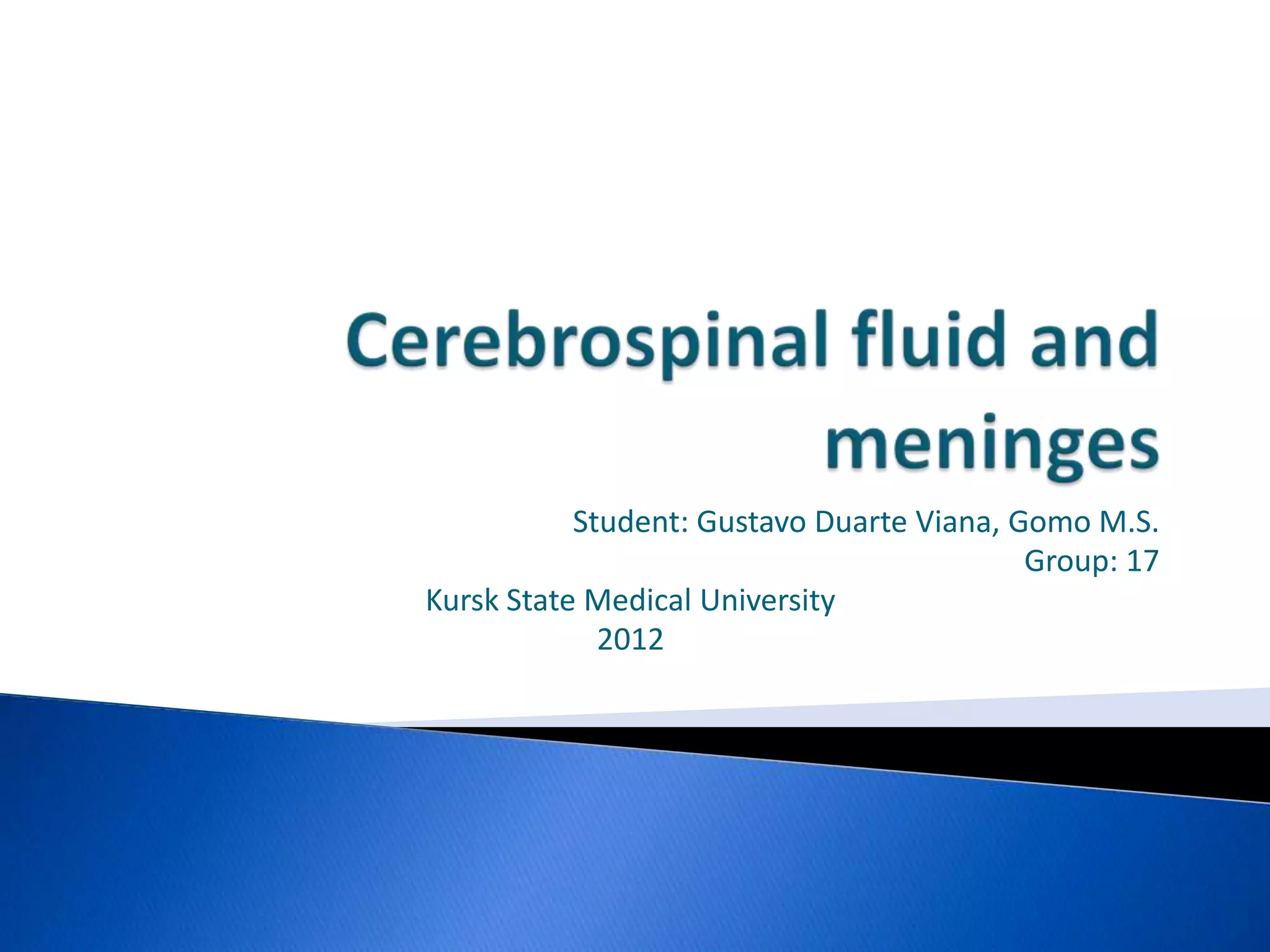 1. Gustavo Duarte Viana is a student at Kursk State Medical University who wrote a document about cerebrospinal fluid in 2012 as part of a group project.