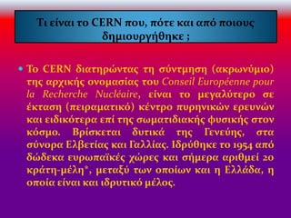 Τι είναι το CERN που, πότε και από ποιους