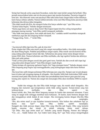 Cerita ini berfokus pada hubungan persahabatan antara Tarin dan Dika, yang meskipun awalnya sangat dekat, mengalami konflik dan perpisahan karena kesalahpahaman. Tarin akhirnya menjalin hubungan dengan Raka, namun hubungan tersebut juga berakhir dengan cepat, meninggalkan Tarin merenungkan pentingnya persahabatan dan kesetiaan sahabat-sahabatnya yang lain. Koridor emosional antara cinta dan persahabatan menjadi fokus utama saat Tarin belajar menghadapi kenyataan dan tantangan hidupnya.