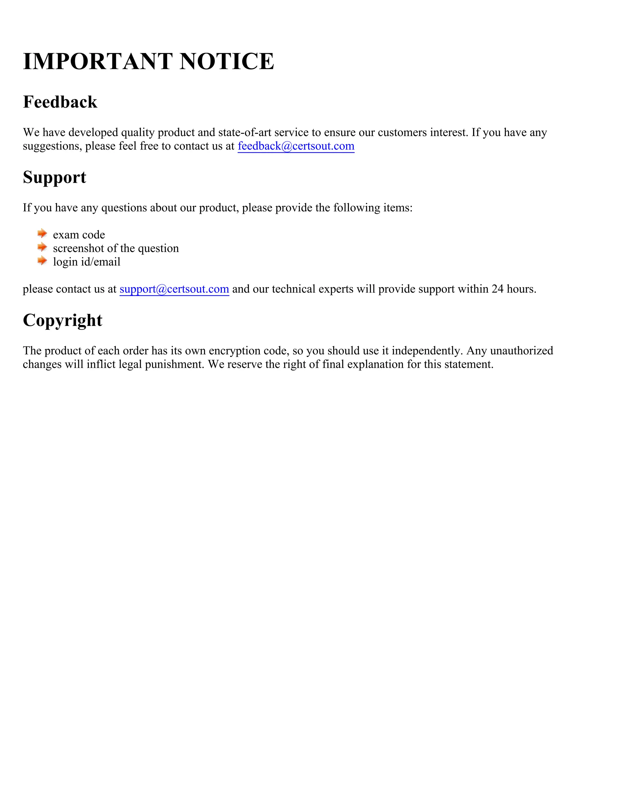 certsout.com wasfounded in 2007. We provide latest & high quality IT / Business Certification Training Exam