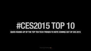 CES 2015 showcased emerging technology trends, including advancements in autonomous cars, Samsung's push for a connected home, and innovative internet TV services like Dish Network's Sling. The event highlighted the importance of storytelling in content creation and the growing significance of wearables, with devices like LG's smart watch and TempTraq demonstrating practical applications. Additionally, Qualcomm and other chipset OEMs are establishing their presence in the Internet of Things ecosystem, while unique gadgets and immersive technologies like Oculus Rift offer new ways to engage consumers.