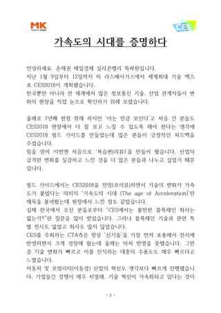 필드 가이드에서는 CES2018을 전망(프리뷰)하면서 기술의 변화가 가속