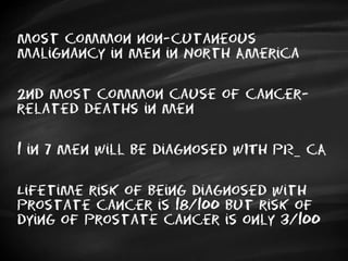 This document discusses prostate cancer, including: