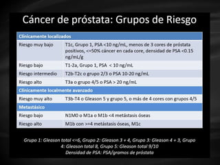 - Treatment options depend on tumor stage and grade. Early stage options include radical prostatectomy, radiotherapy, brachytherapy, active surveillance, or observation. Later stage options involve more aggressive treatments. Complications can include incontinence and erectile dysfunction.