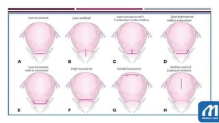 This document provides an overview of cesarean section (C-section). It defines a C-section as a surgical procedure to deliver babies through incisions in the abdominal and uterine walls after 28 weeks of gestation. The C-section rate in the US has risen from 5% in 1970 to 31.9% in 2016. While it poses risks, C-section can be the safest delivery method for some women and babies. The document then describes the personnel, procedures, types, indications, risks, and postoperative care of C-sections.