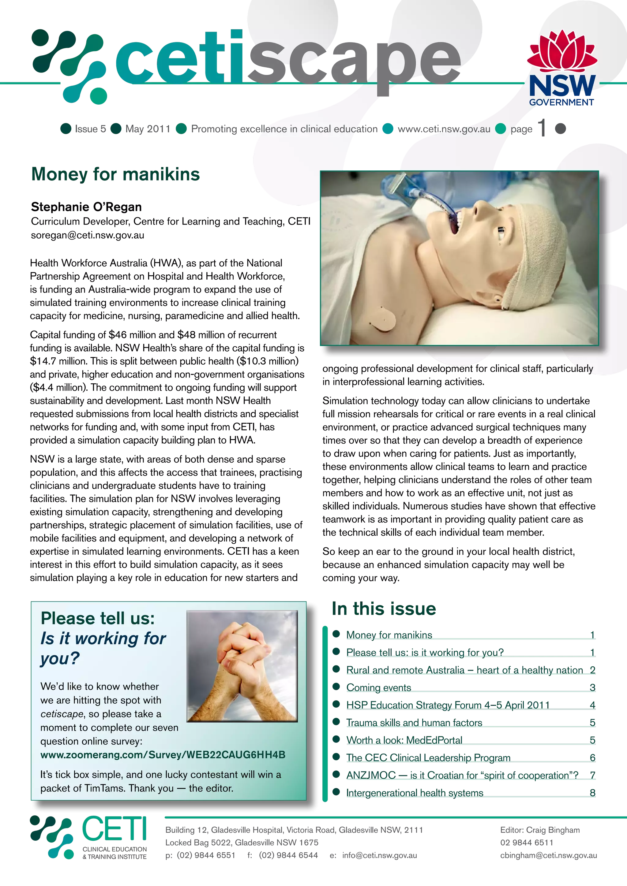 2) In New South Wales, $14.7 million in capital funding will be used to leverage existing simulation capacity, strengthen partnerships, strategically place new simulation facilities, and develop a network of simulation expertise.