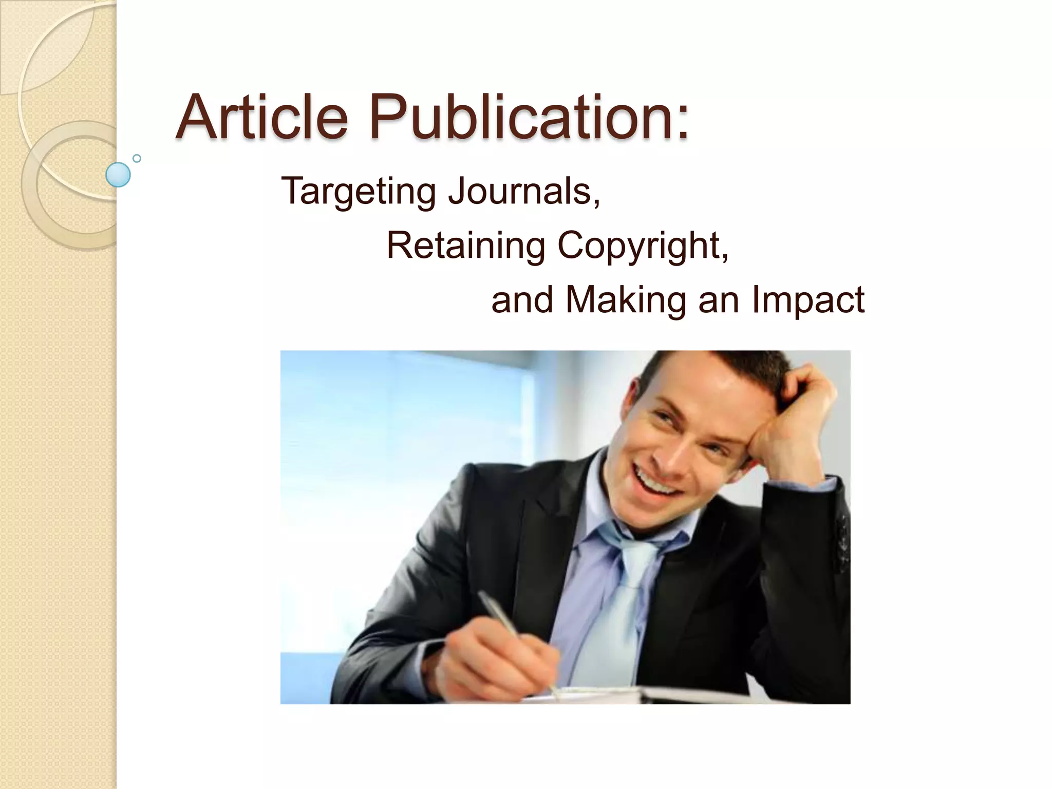 This document provides guidance on targeting core journals for publication, retaining copyright as an author, and making an impact. It defines what makes a journal core based on acceptance by scholars, impact factor, visibility and acceptance rates. It also discusses determining a journal's quality, retaining full or partial copyright, and alternatives to impact factor for evaluating journals, including Eigenfactor and SCImago. The goal is to help authors select the best journals for their work and understand copyright issues to maximize the impact of their research.