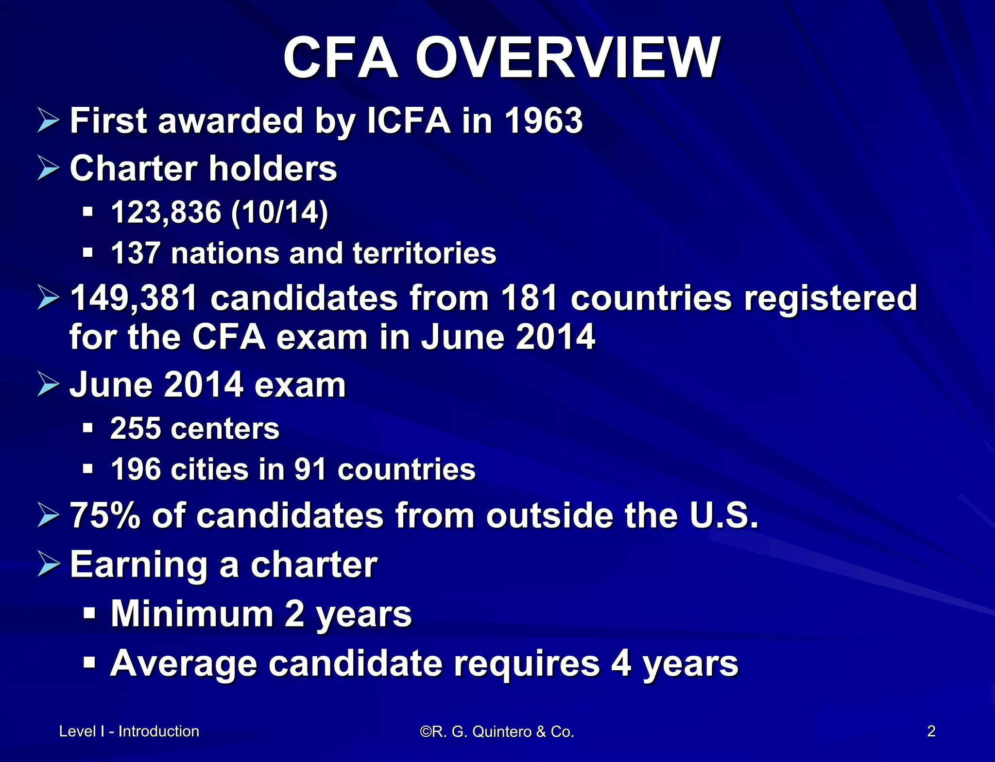 The document provides an overview of the CFA (Chartered Financial Analyst) program, highlighting its significance, structure, and examination process. It details the statistics on candidates and the international recognition of the CFA as a gold standard in financial education. Additionally, it offers insights into exam preparation strategies, topics covered, and challenges faced by candidates.