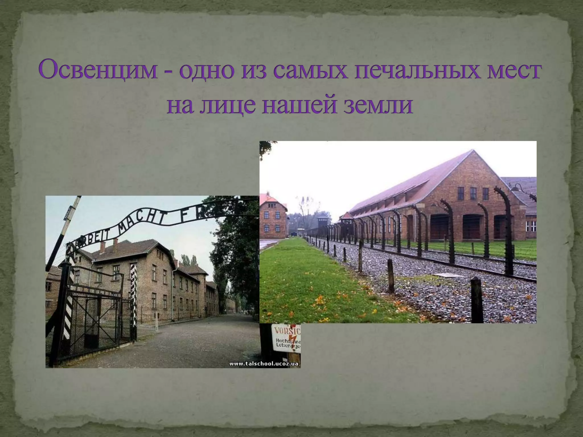 Документ описывает историю концентрационного лагеря Аушвиц, созданного в Освенциме во время Второй мировой войны, где погибли более миллиона человек, в основном евреи. Освобождение лагеря произошло 27 января 1945 года, а текст подчеркивает важность сохранения памяти о Холокосте и предотвращения повторения подобных ужасов в будущем. Главной идеей является необходимость ценить мир и помнить о страданиях жертв.