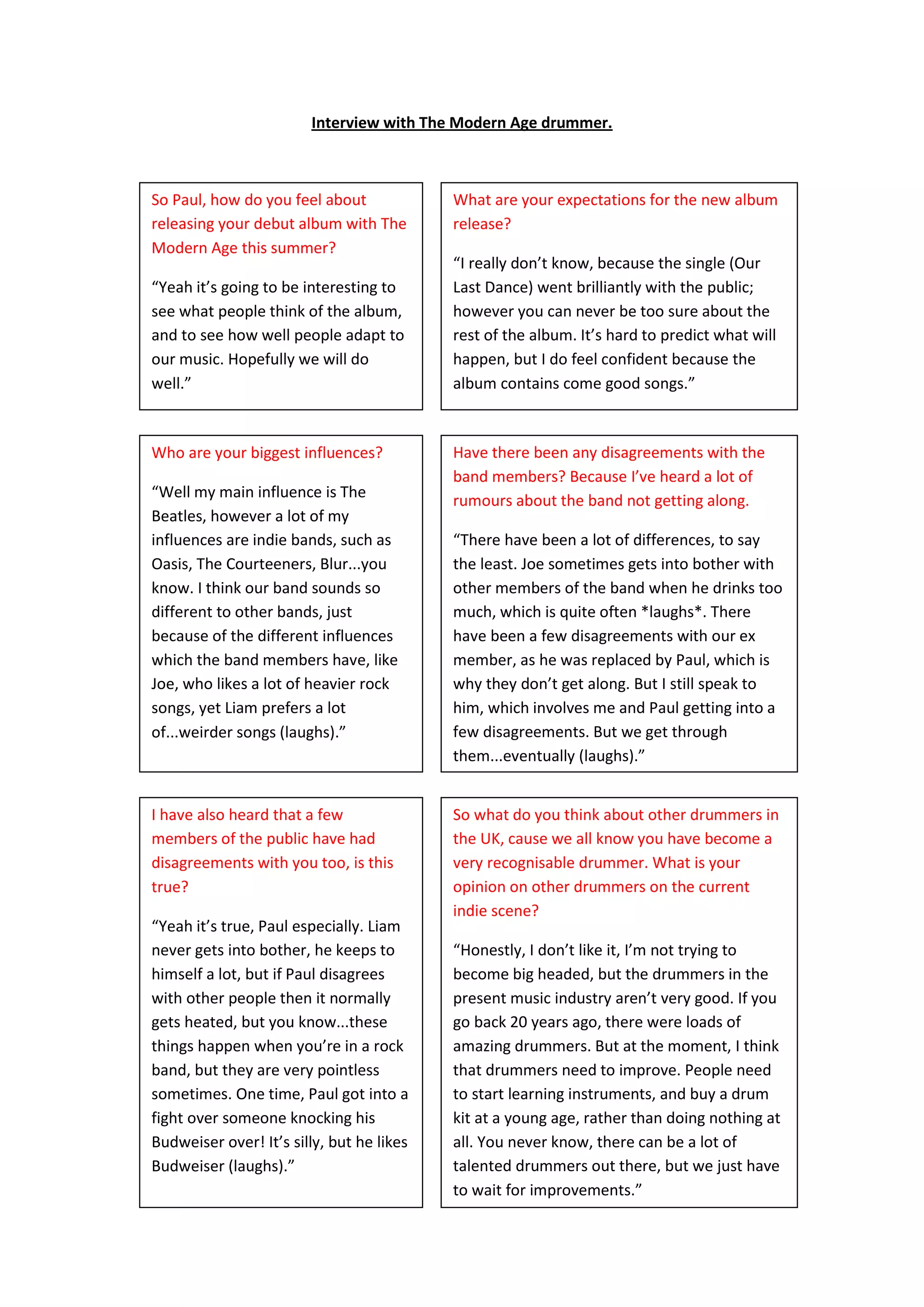 The drummer of The Modern Age band discusses their upcoming debut album release this summer in an interview. While he is unsure how the full album will be received, the lead single did very well. There have been some disagreements between band members in the past, as well as with people in the audience and other bands like Linkin Park. The drummer feels confident in their album and that it features some good songs, but they will have to wait and see how the public responds to the full release.