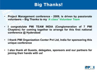 1. VSR introduces the Project Management conference in Hyderabad and thanks the volunteers and sponsors for making it possible.