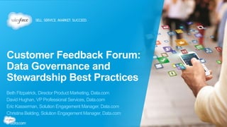 The document discusses best practices for data governance and stewardship. It recommends starting with cataloging all data assets, identifying current and future states, and planning governance roles and processes. It then provides details on assessing data quality, cleaning data, and establishing a data governance team with roles like stewards and custodians. It emphasizes the importance of data lifecycles and having the right data at the right time to drive business goals.