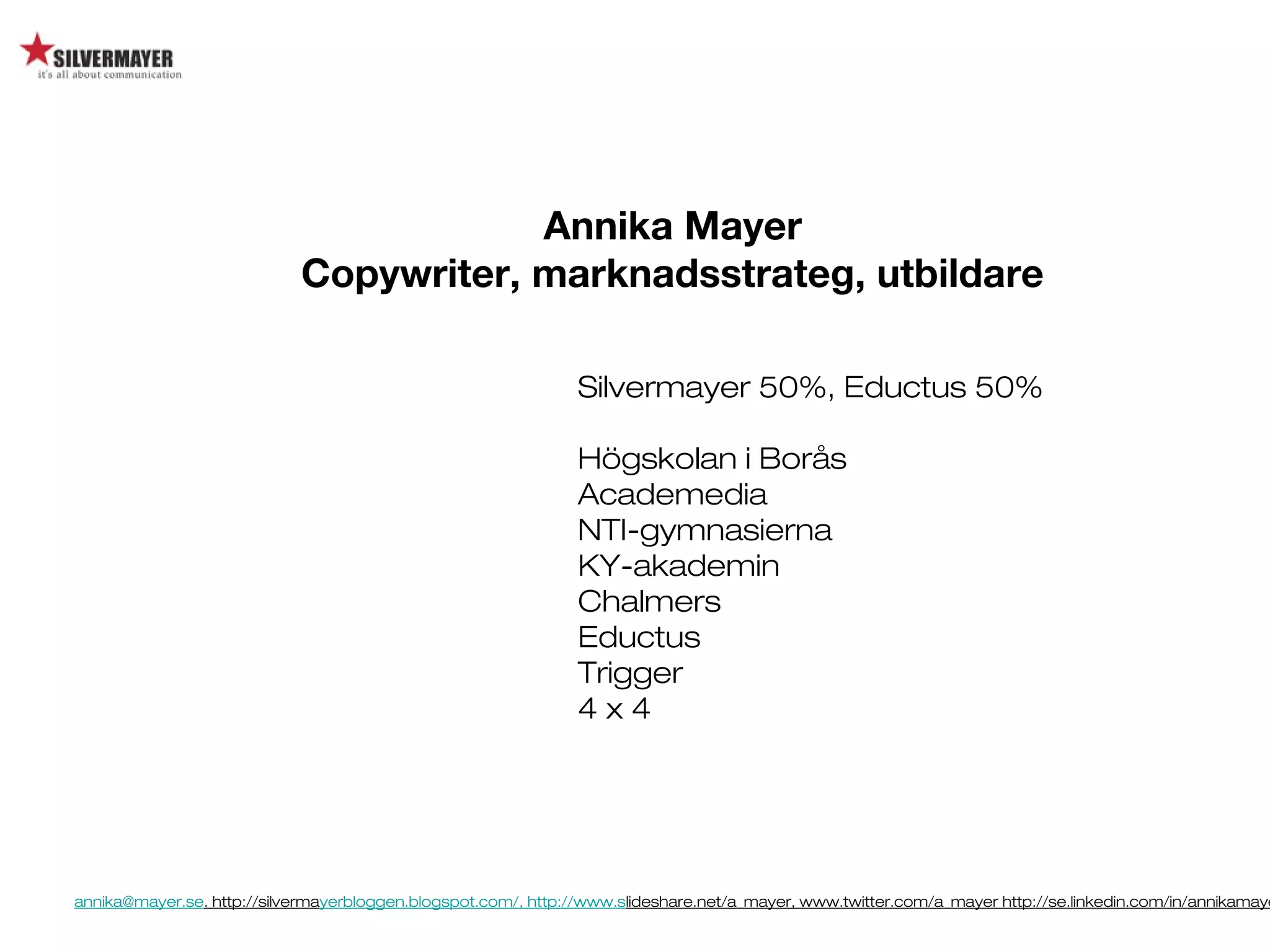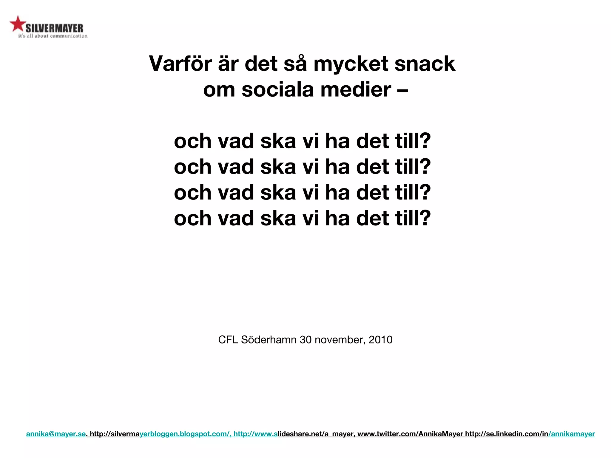 Återigen blir första sliden minst sagt märklig...har laddat om presentationen ett par gånger men Slideshare verkar vilja få det att se ut som jag hakat upp mig:)