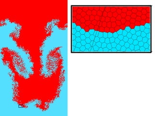 The document outlines various computational methods for simulating physics and fluids in computer graphics, discussing the mathematical principles underpinning these simulations, such as Newton's laws and fluid dynamics. It addresses the implementation of algorithms for optimal transport and the challenges of achieving precision in simulations. Key concepts include differential calculus, particle systems, and the use of diagrams such as Voronoi for modeling fluid behavior.