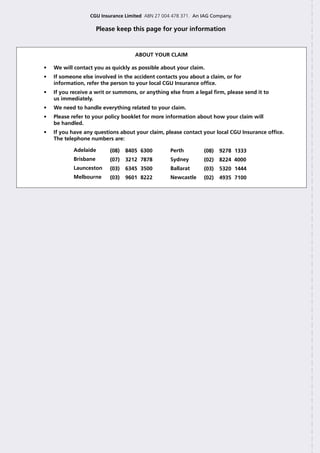 This document provides instructions for handling a personal and public liability insurance claim. It includes sections for reporting details of the insured, accident details, injury details if applicable, and property damage details if applicable. The insured is asked to provide full details to allow the insurer to process the claim quickly.