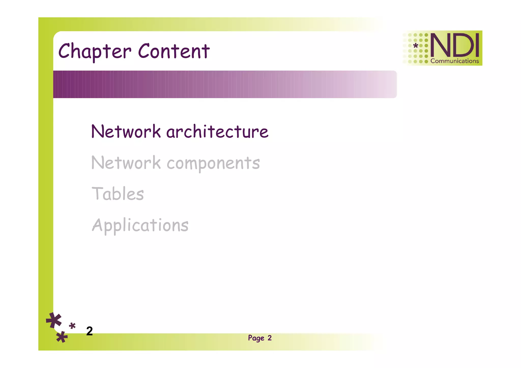 This document provides an overview of SDN and OpenFlow. It describes the traditional network structure with separate control, forwarding, and management planes. With SDN, the control plane is centralized into a controller that programs "dumb" switches via the OpenFlow protocol. The controller manages flow tables on switches to determine how traffic is forwarded. Key OpenFlow components include the controller, OpenFlow channel, flow tables, group tables, and meter tables. The document provides examples of how OpenFlow can implement switching, routing, firewalls, and other network functions through flow table entries.