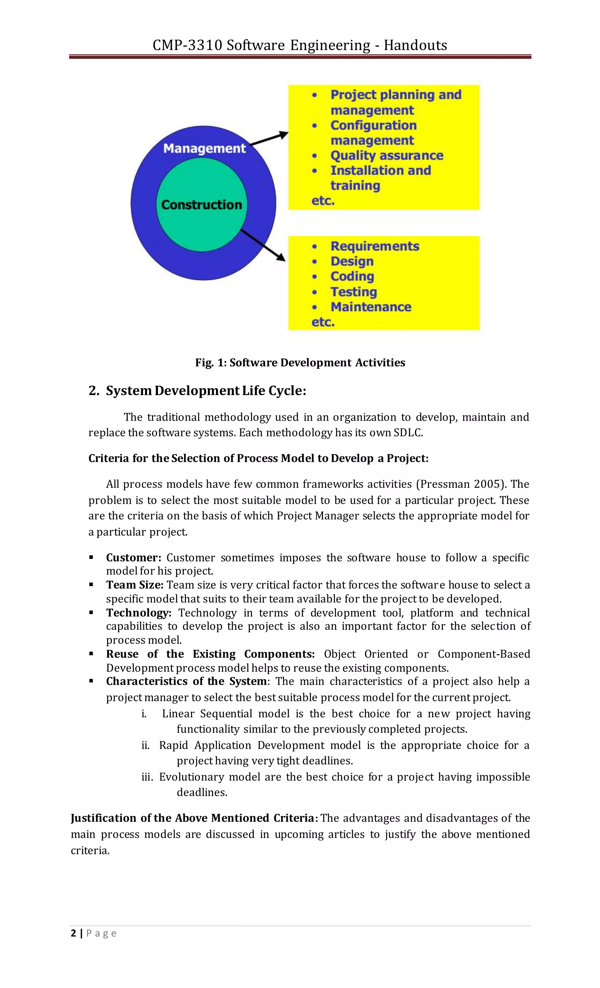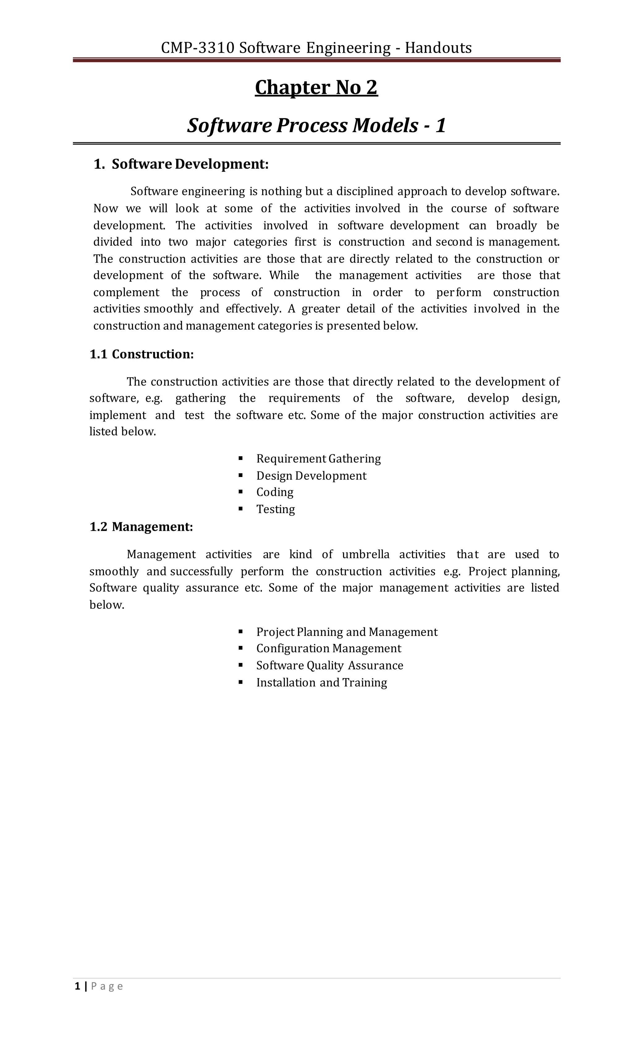 The document discusses different software process models. It describes the waterfall model, which involves sequential phases of requirement analysis, design, implementation, testing, and maintenance. The waterfall model suggests a systematic approach but real projects rarely follow sequential phases and instead involve overlap and feedback between phases. The document also briefly describes the build-and-fix model, which develops software without specifications or design and relies on repeated modifications until requirements are met.
