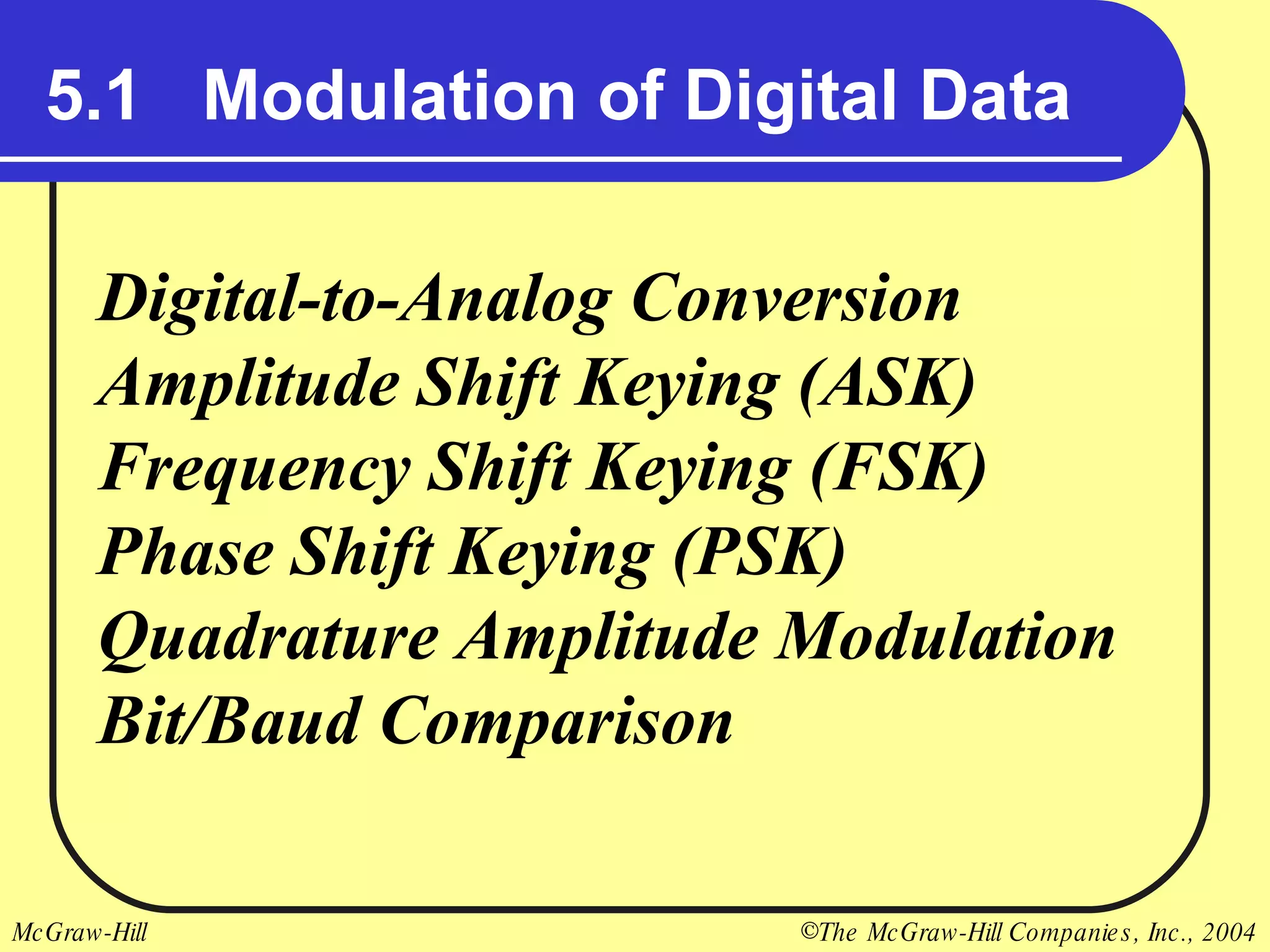 This document discusses various analog and digital modulation techniques used to transmit digital and analog signals. It provides examples of calculating bit rates, baud rates, and bandwidth requirements for different modulation schemes including ASK, FSK, PSK, QAM, AM, and FM. Key modulation techniques covered are the modulation of a digital signal using digital-to-analog conversion and modulation of an analog signal using amplitude, frequency, or phase modulation.