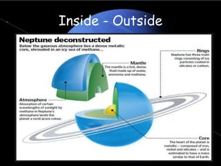 Neptune is the eighth and farthest known planet from the Sun in our solar system. It has a blue appearance due to methane in its atmosphere absorbing red light and reflecting blue wavelengths. Neptune has the third largest planet in the solar system, with a diameter roughly four times larger than Earth and an extremely powerful wind speeds. The planet has a prominent magnetic field and ring system composed of small, dark particles.