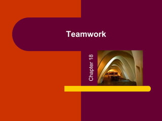 The document discusses the evolution and significance of teamwork in organizations over the past two decades, highlighting the need for flexibility, speed, and employee involvement. It elaborates on team types, development stages, characteristics, and the balance between conflict and cooperation, emphasizing the benefits and costs associated with teams. The information serves to guide managers in creating effective teams and facilitating communication.