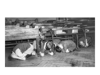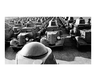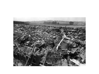 Germany attacked France and cornered Allied forces at Dunkirk, but bad weather allowed the British navy to rescue troops across the English Channel. Germany then bombed Britain for over 3 months but failed to break the Royal Air Force. Hitler invaded the Soviet Union to seize its resources but faced scorched earth tactics, and later turned his attention to the Pacific by attacking islands like the Philippines. Several key events turned the tide of war, including Germany fighting on two fronts after invading the USSR, the US entering the war after Japan's attack, Italy surrendering following the Allied invasion of Sicily, and the Allied D-Day invasion of France leading ultimately to Germany's defeat on V-E Day in 1945, after which the US dropped atomic