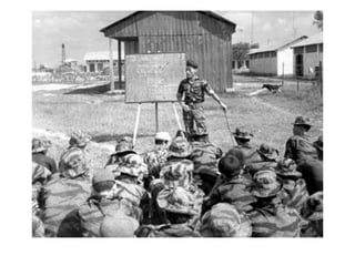 The US became involved in Vietnam to prevent South Vietnam from falling to communism, fearing this could lead other Southeast Asian countries to also fall (domino theory). While initially sending advisors, the Gulf of Tonkin Resolution allowed greater US action after two American destroyers were attacked. There was division at home between those favoring and opposing the US presence in Vietnam. Fighting was difficult for the US due to jungle terrain, lack of large targets, and challenges identifying Viet Cong opponents. A surprise Tet Offensive by Vietnamese Communists in 1968 despite a ceasefire caused heavy casualties on all sides. The US later began gradually transferring responsibility for fighting to South Vietnam through a Vietnamization process while still providing support.