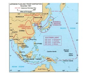 The Japanese attacked the Philippines hours after bombing Pearl Harbor. US forces under Douglas MacArthur retreated to Bataan Peninsula but later surrendered, resulting in the brutal Bataan Death March. The Doolittle Raids on Tokyo boosted American morale. The Battle of Midway was a major turning point, after which Japan was on the defensive. Manhattan Project scientists developed the atomic bomb, which the US dropped on Hiroshima and Nagasaki in August 1945, leading to Japan's surrender and the end of WWII.