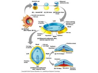 Gastrulation rearranges a blastula into a triploblastic gastrula with three germ layers - ectoderm, mesoderm and endoderm. These germ layers then differentiate into various tissues and organs through the process of organogenesis. Patterning and morphogenesis in animal development involves changes in cell shape, position and adhesion regulated by the cytoskeleton, extracellular matrix, cell adhesion molecules and growth factors.