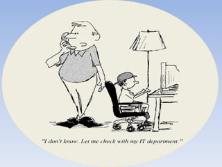 This document discusses the IT infrastructure of the National Database and Registration Authority (NADRA) of Pakistan. It outlines the key components of NADRA's national information infrastructure including its country-wide data communication network, networking capabilities, interfacing of databases and facilities for information sharing. It describes NADRA's hardware, including computers, cameras, scanners, switches and printers. It also discusses the software used, including operating systems, applications for citizen registration, database management and online verification. It provides an overview of NADRA's network architecture with connections between various registration centers and data centers. It also summarizes the main databases used for citizen registration and customer relationship management. The document highlights security measures used including firewalls, antiv