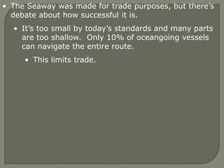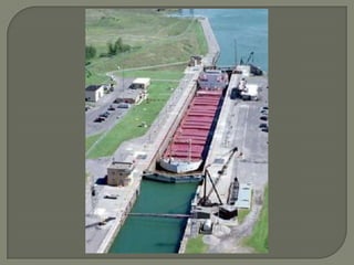Humans first migrated to North America over the Bering Land Bridge around 12,000 years ago, gradually populating the Americas as nomadic hunters and gatherers. As some settled down to farm and adapt to their environments, cities began to emerge in locations determined by surrounding land and resources, such as Montreal on an island at the confluence of two rivers, and Los Angeles which sprawled due to mild weather and available land. Waterways like the St. Lawrence Seaway connected the Great Lakes for trade but also introduced invasive species.