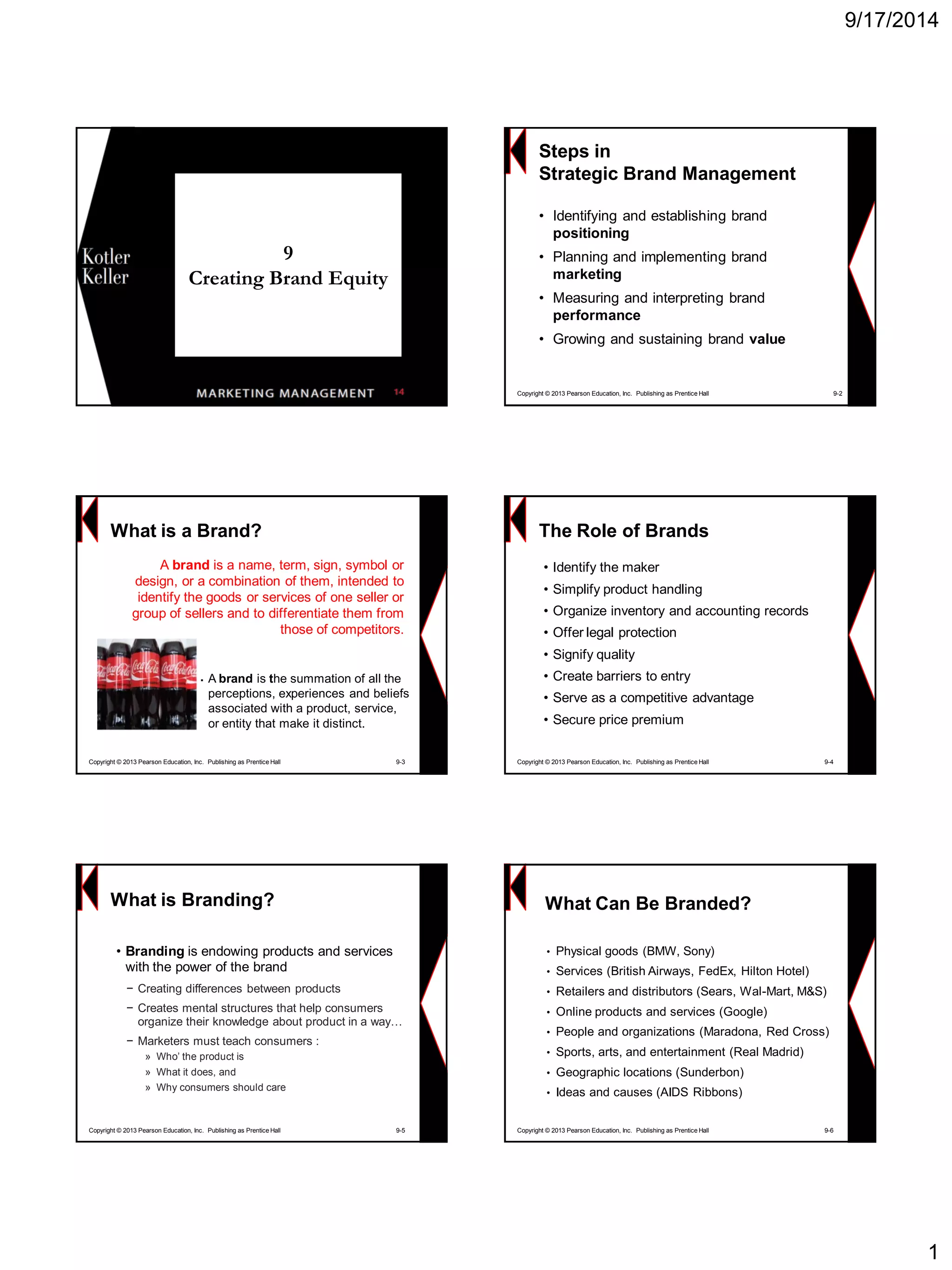This document discusses brand equity and strategies for creating and managing brands. It covers key topics such as: