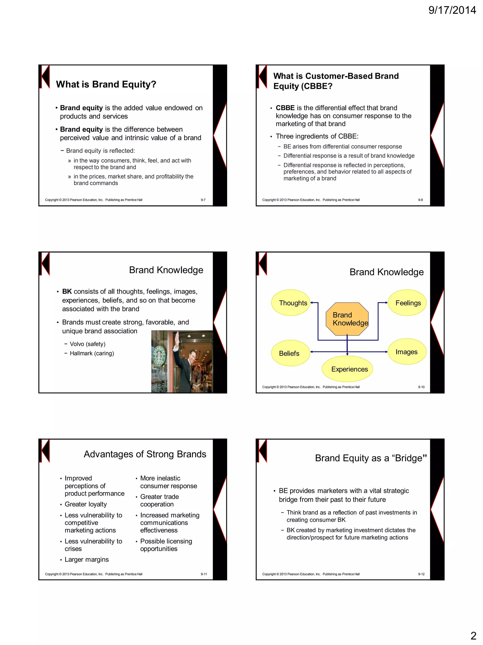 1) Defining brand equity as the added value provided by a brand, as reflected in consumer perceptions and behaviors and the prices and profitability a brand commands.