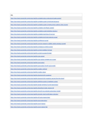 The document contains over 100 URLs linking to various online courses and training programs sold on the Coursehulk website. The courses cover a wide range of topics including ecommerce, marketing, sales, personal development, trading, and more.