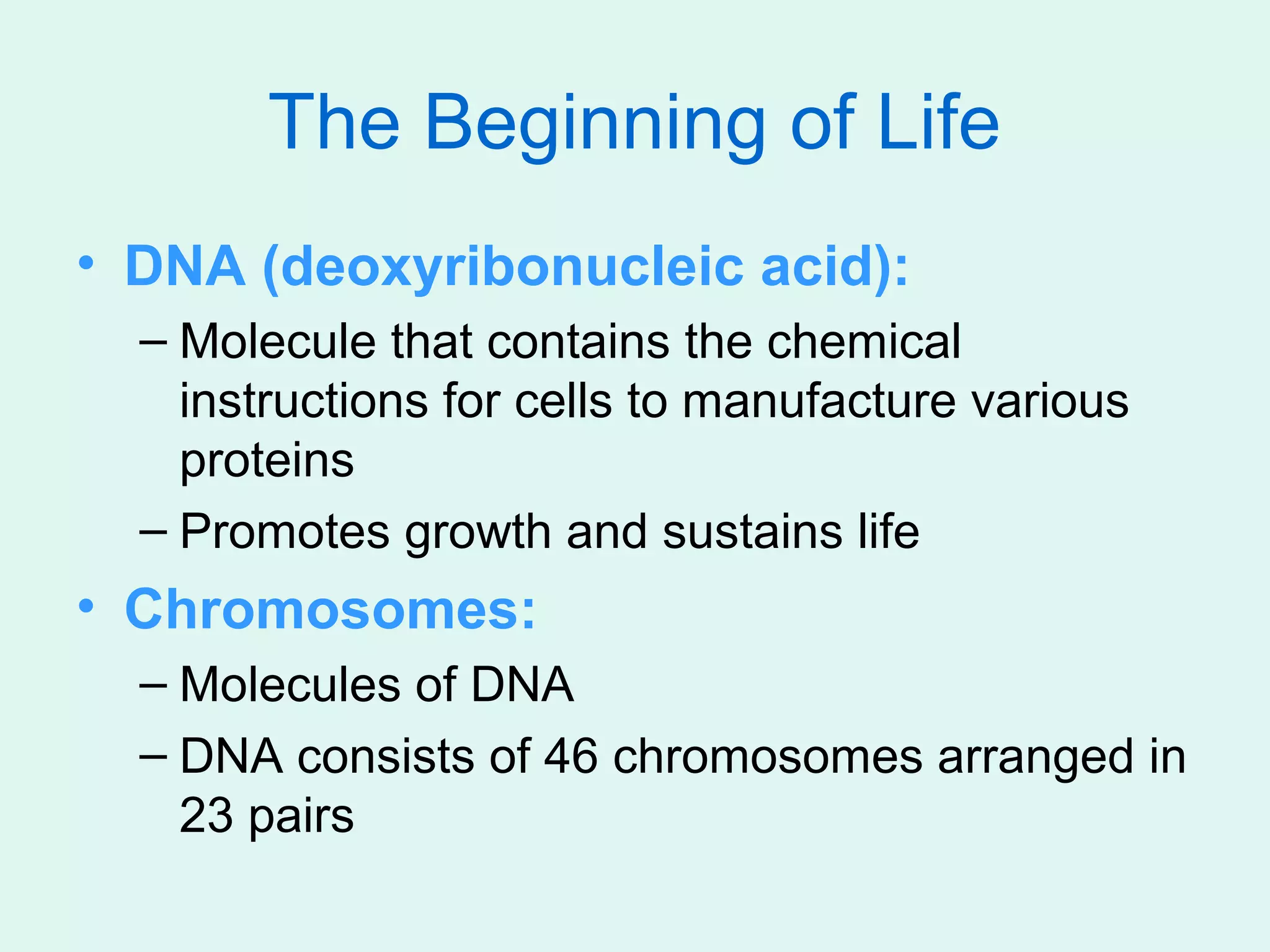 1. It describes the basic components of DNA, chromosomes, genes and how genetic material is inherited from parents during conception.