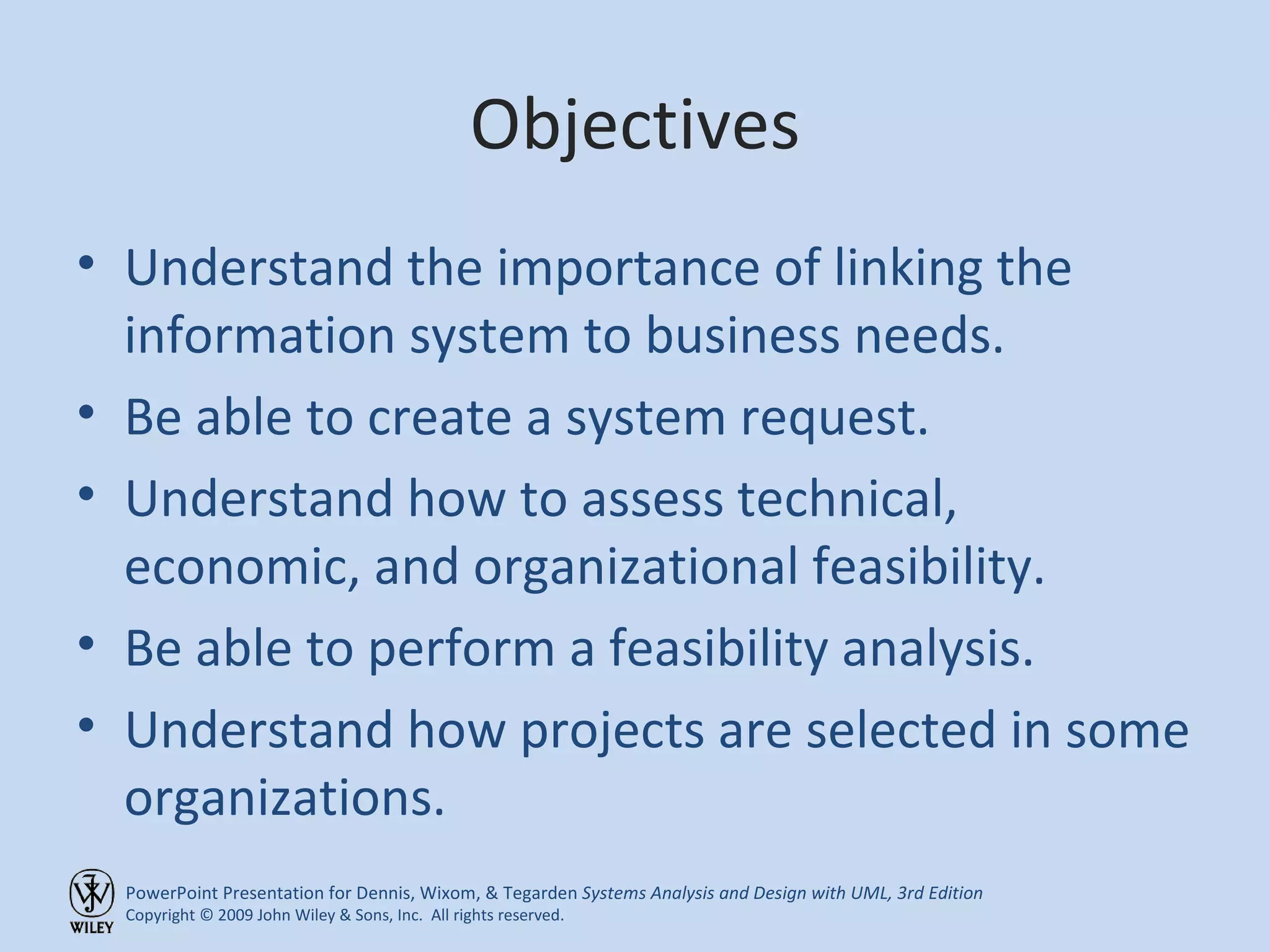 This document discusses project identification, selection, and feasibility analysis. It explains that projects should be driven by business needs and provide business value. A feasibility analysis evaluates the technical, economic, and organizational feasibility of a project. It also discusses how organizations should select projects through a deliberate process aligned with business goals, rather than based on political factors or other arbitrary methods.