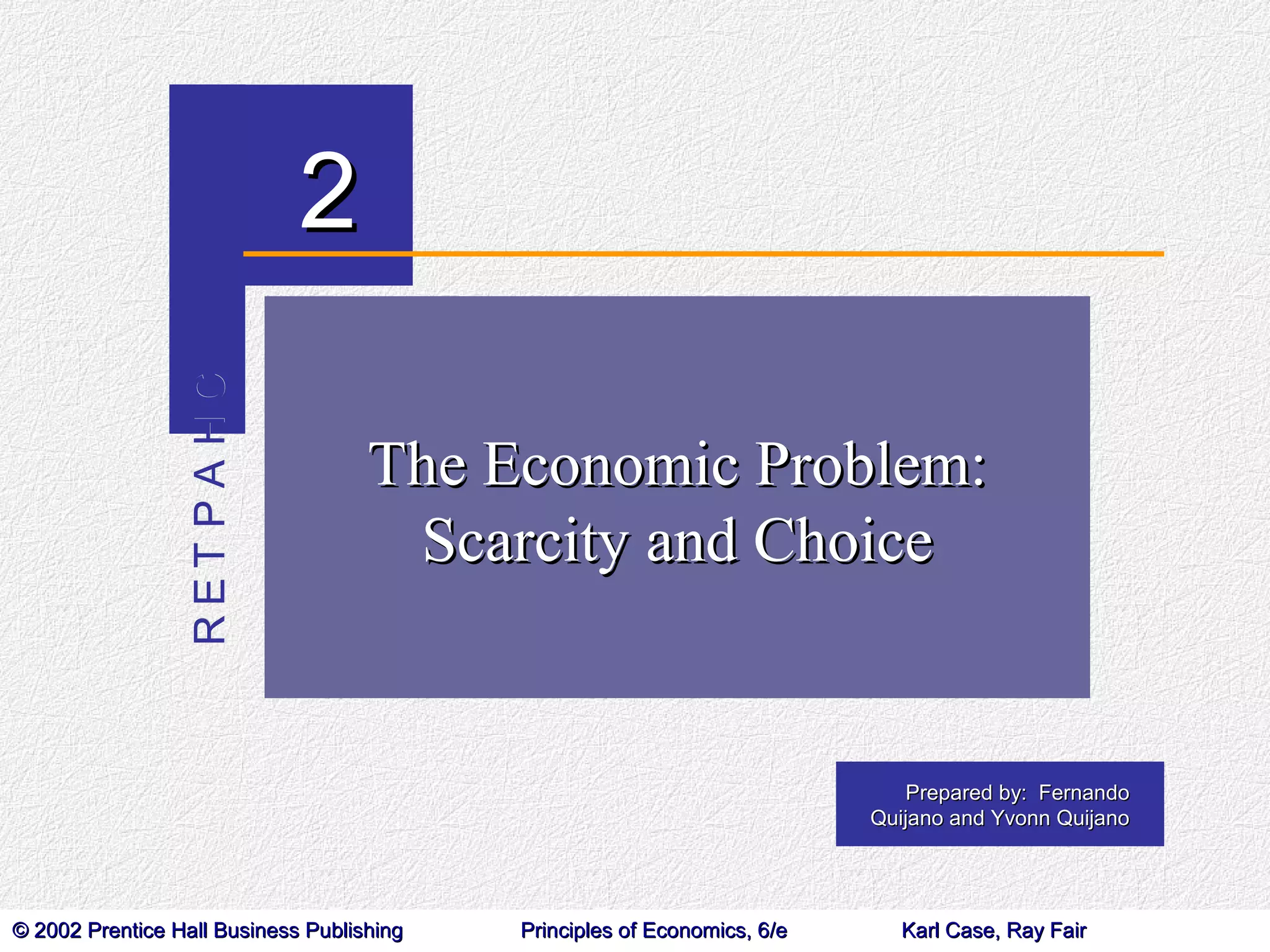 This document provides an overview of key economic concepts including production, scarcity, specialization, comparative advantage, opportunity costs, the production possibility frontier, economic growth, and different types of economic systems. It defines production as transforming resources into useful forms. It explains the three basic economic questions as what to produce, how to produce, and who gets what is produced. Specialization and trade allow countries to benefit based on their comparative advantage. The production possibility frontier illustrates scarcity and tradeoffs between goods. Economic growth comes from accumulating capital and technological advances. Command, market, and mixed economies differ in how they address the economic problem.