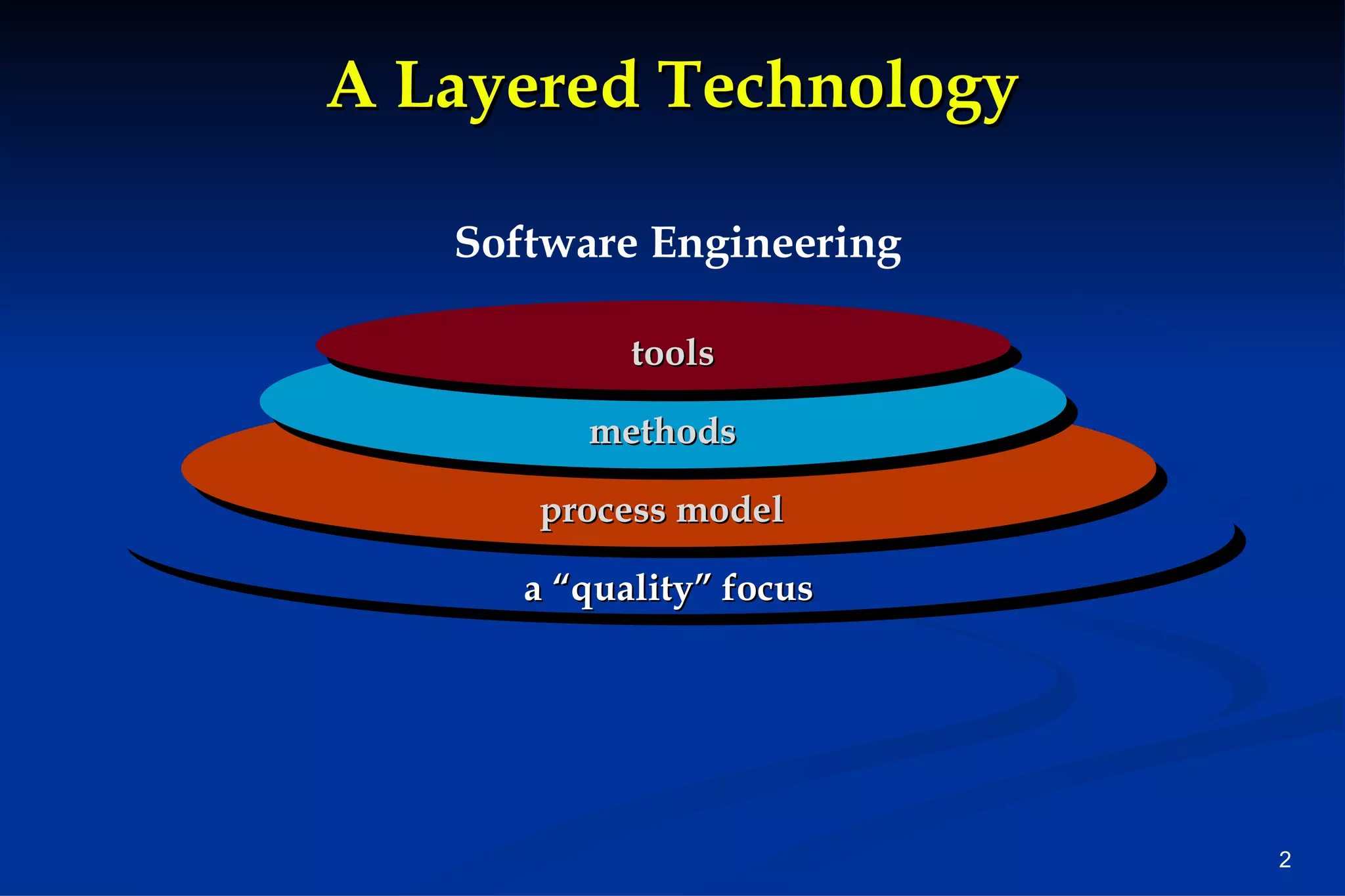 The document discusses software engineering processes and process frameworks. It describes common framework activities like requirements analysis, design, coding, testing and deployment. It also discusses umbrella activities, process models, the CMMI process model, process patterns, process assessment methods, and process improvement approaches like the Personal Software Process and Team Software Process which emphasize measurement and continuous improvement. The primary goal of any software process discussed is to deliver high quality software on time through effective requirements analysis, design, coding, testing and reducing rework.