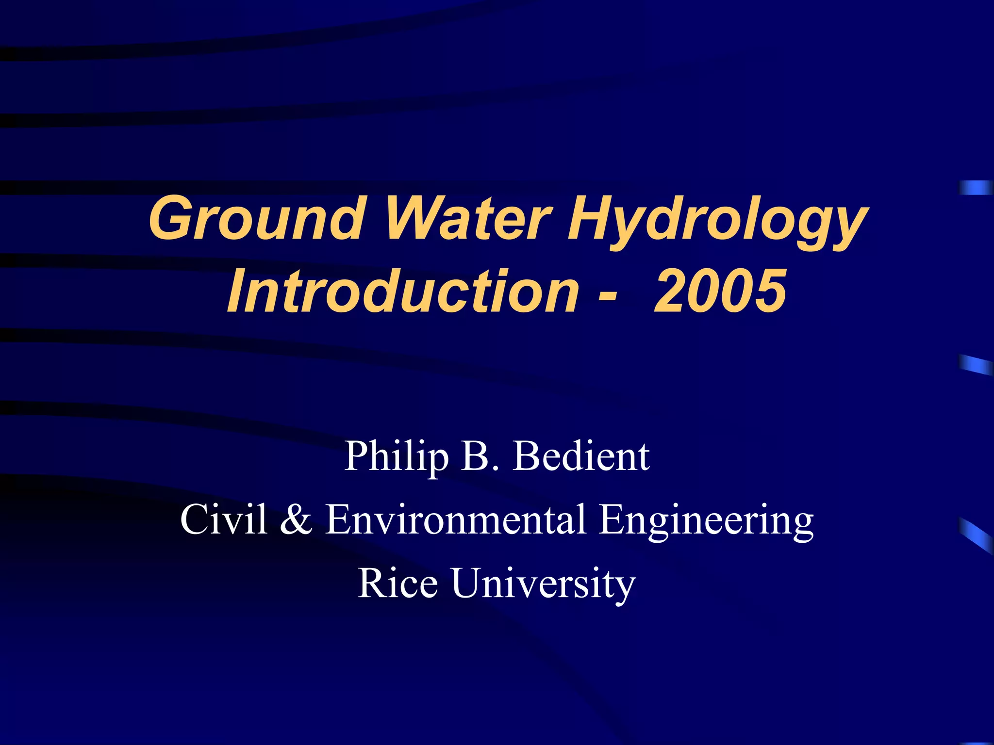 This document provides an overview of groundwater hydrology and aquifer systems. It discusses key topics such as:
