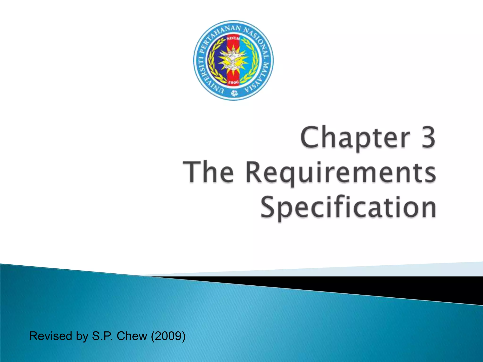 The document discusses developing well-formed engineering requirements. It outlines that by the end of the chapter, the reader should understand properties of engineering requirements like being abstract, verifiable, unambiguous and traceable. It also discusses developing a complete requirements specification by identifying requirements from customers, environment and technical standards. Advanced analysis methods like tradeoff analysis are examined to refine requirements.