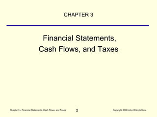 This chapter discusses key financial statements including the balance sheet, income statement, statement of retained earnings, and statement of cash flows. It also covers accounting principles such as GAAP, inventory valuation methods, depreciation, and amortization. Additionally, it describes the federal corporate income tax system and tax treatment of dividends versus interest payments. Financial statements are prepared according to GAAP and provide important information to managers and investors about a company's performance and financial position.