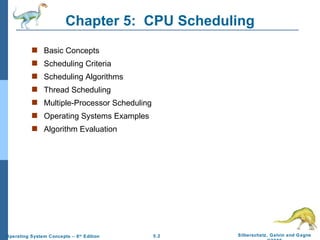 The document discusses CPU scheduling in operating systems. It covers basic concepts like CPU bursts and scheduling criteria. It then describes common scheduling algorithms like FCFS, SJF, priority scheduling, and round robin. It also discusses thread scheduling, multiprocessor scheduling, and examples of scheduling in Solaris, Windows, and Linux.