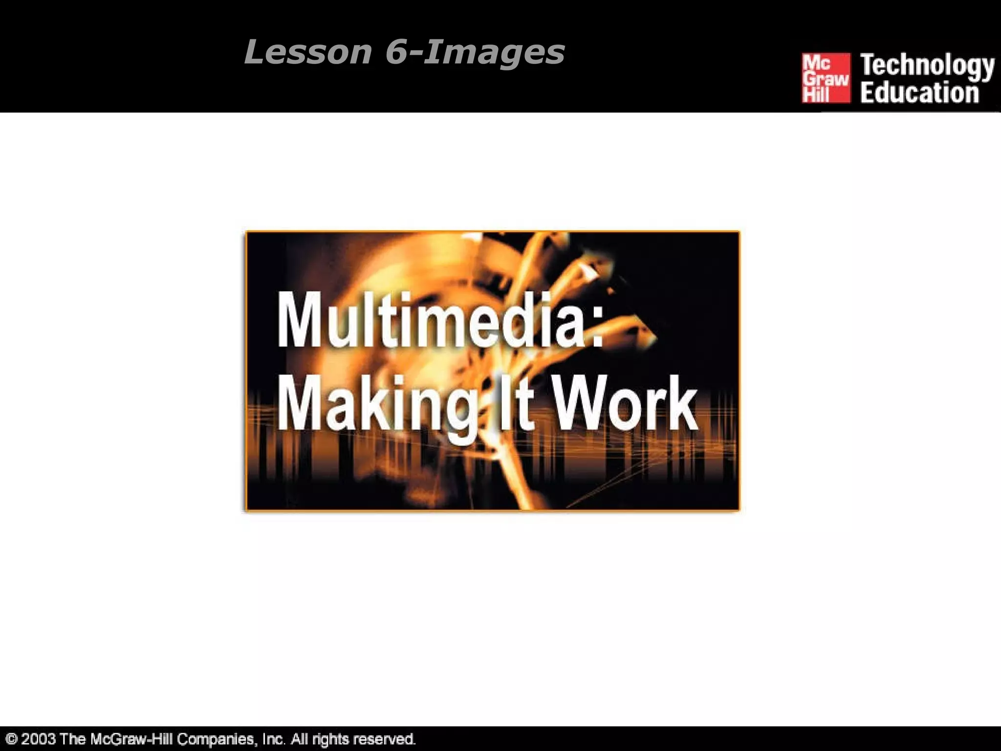 Images are an important element in multimedia. There are two main types of images: bitmaps, which use pixels to represent color information, and vector images, which use mathematical coordinates. Various tools can be used to create and edit images, including bitmap software, 3D modeling programs, and image capture and editing features. Color is a key aspect, with different color models and palettes used depending on the intended display and use of the images.