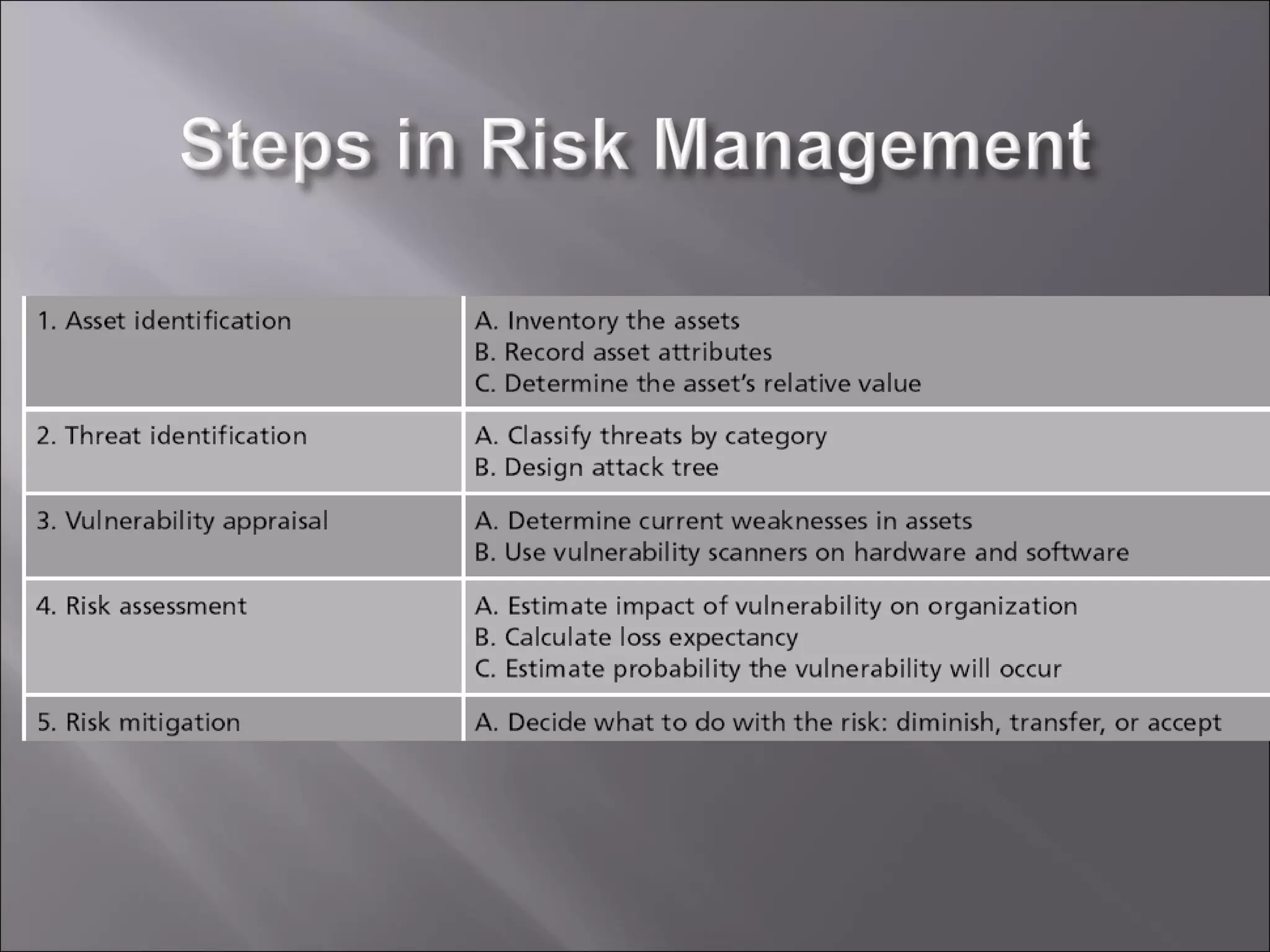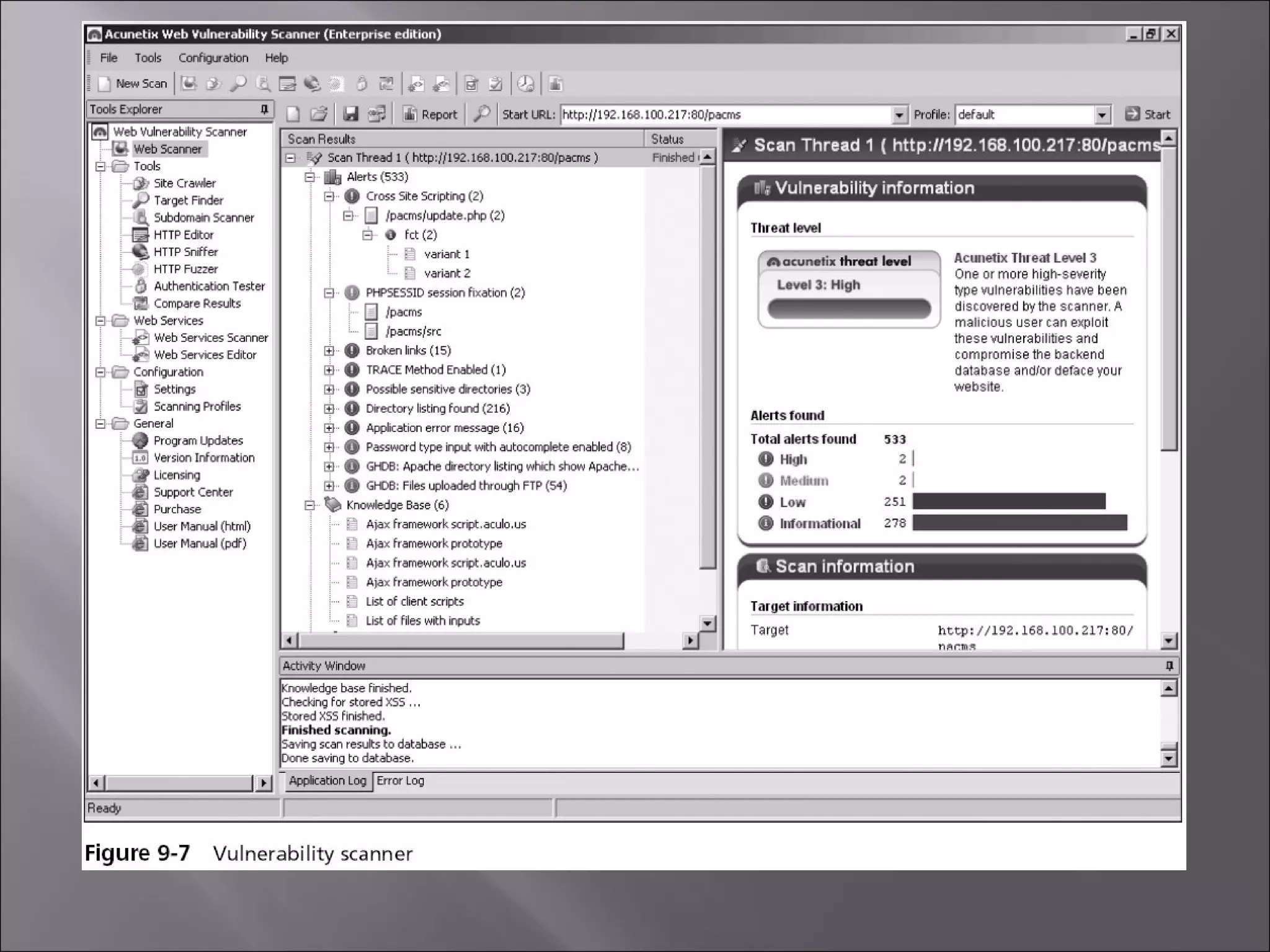Chapter 9 discusses performing vulnerability assessments, emphasizing the importance of risk management in protecting organizational assets, particularly data. It details the steps in risk management, such as identifying assets and threats, assessing vulnerabilities, and choosing risk response strategies. The chapter also describes various tools for vulnerability scanning and penetration testing, highlighting their roles in identifying security weaknesses.