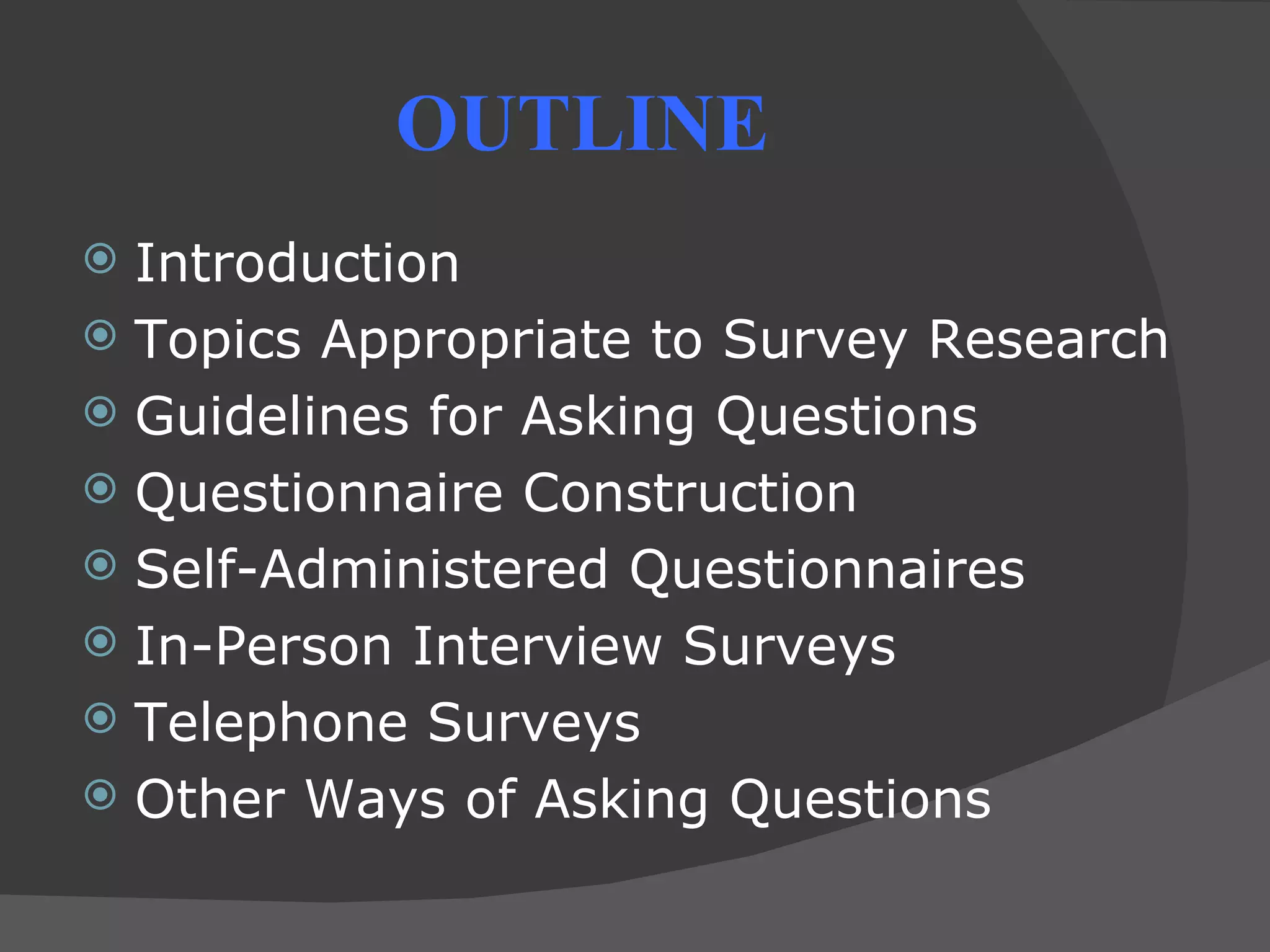 The document outlines various methods and guidelines for conducting survey research, emphasizing its significance in sociology, political science, and criminal justice. It covers questionnaire construction, the importance of question design, types of surveys (self-administered, in-person, telephone), and techniques to enhance response rates. Additionally, it discusses the challenges and considerations in selecting the appropriate survey method based on research objectives.