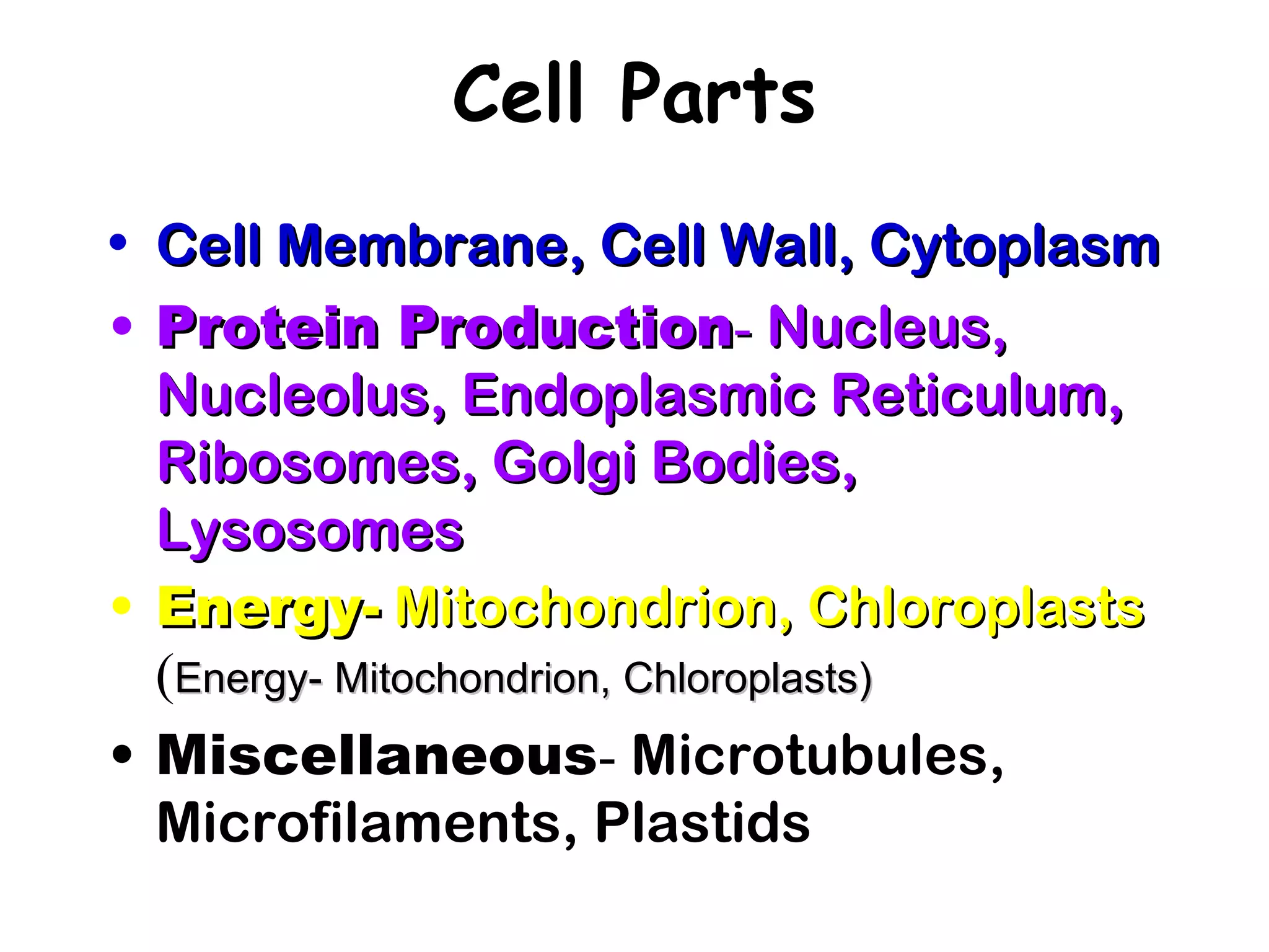 The document summarizes the key parts and organelles of the cell, including the cell membrane, nucleus, cytoplasm, mitochondria, chloroplasts, endoplasmic reticulum, Golgi bodies, lysosomes, microtubules, and plastids. It provides detailed descriptions and images of each organelle's structure and function within the cell.