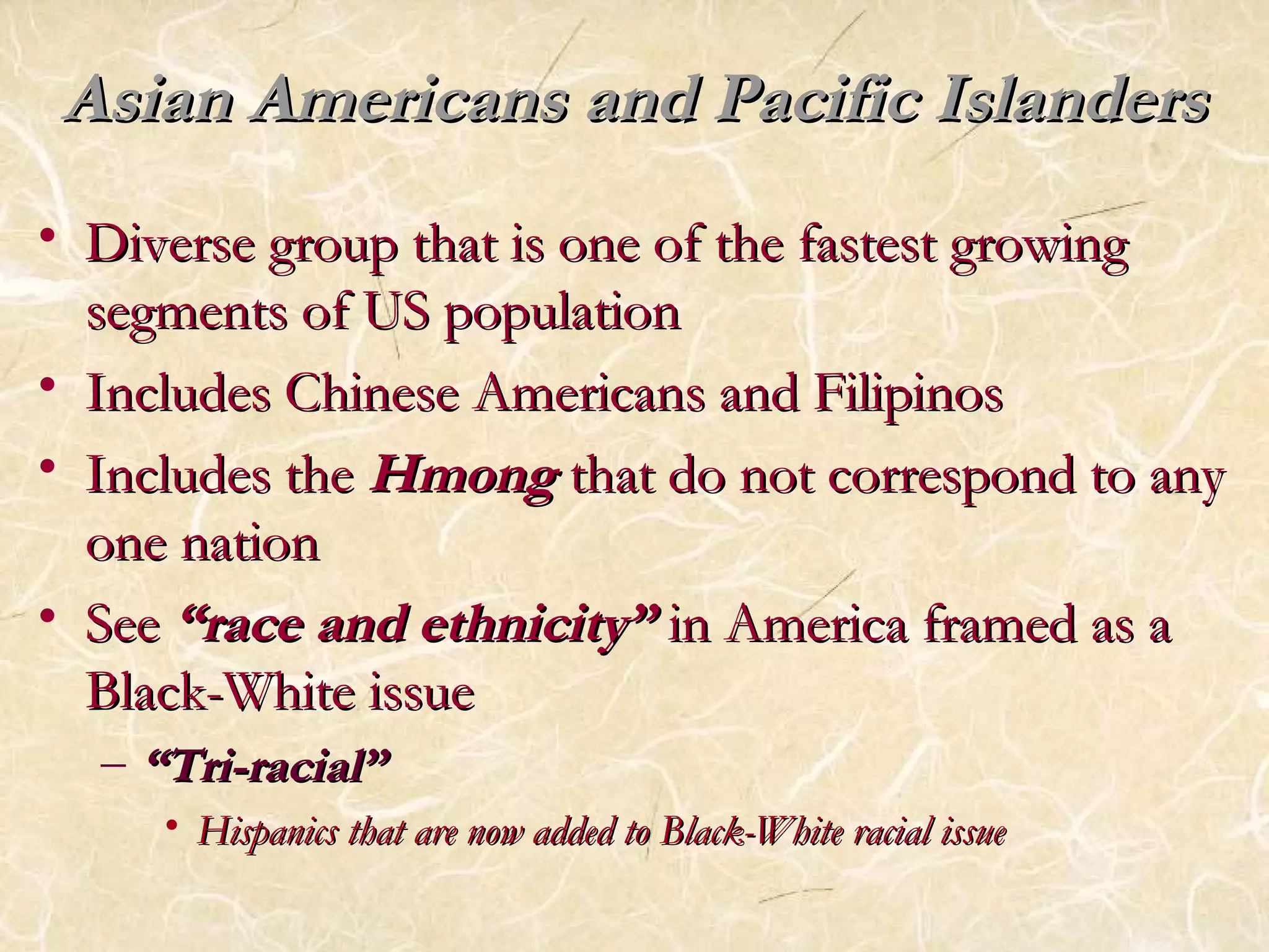 • IInncclluuddeess CChhiinneessee AAmmeerriiccaannss aanndd FFiilliippiinnooss